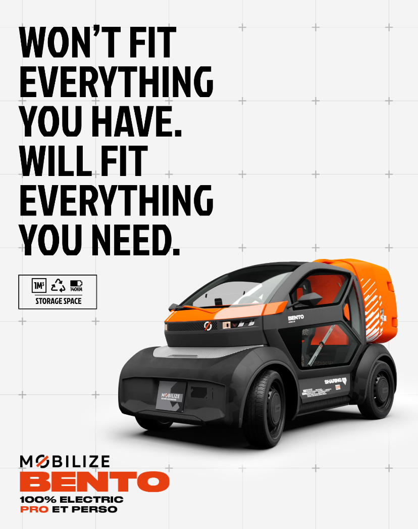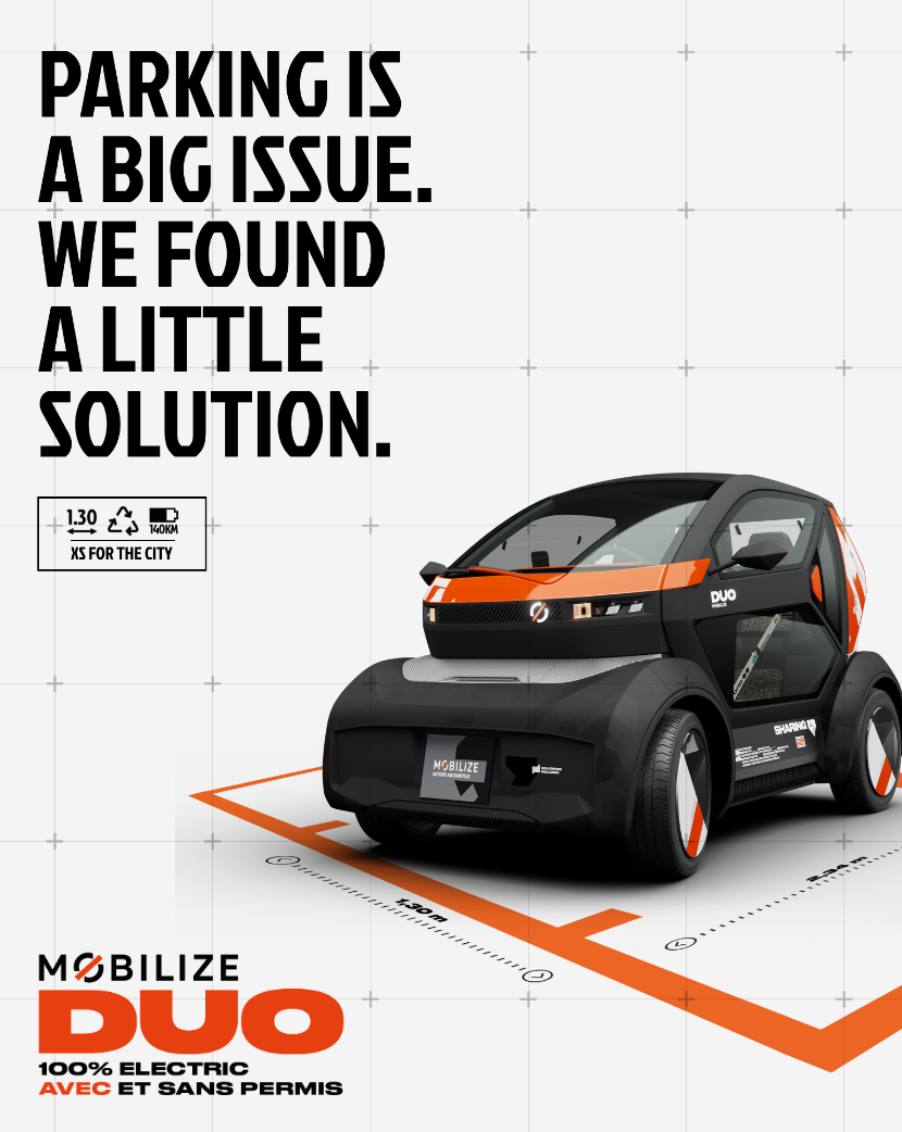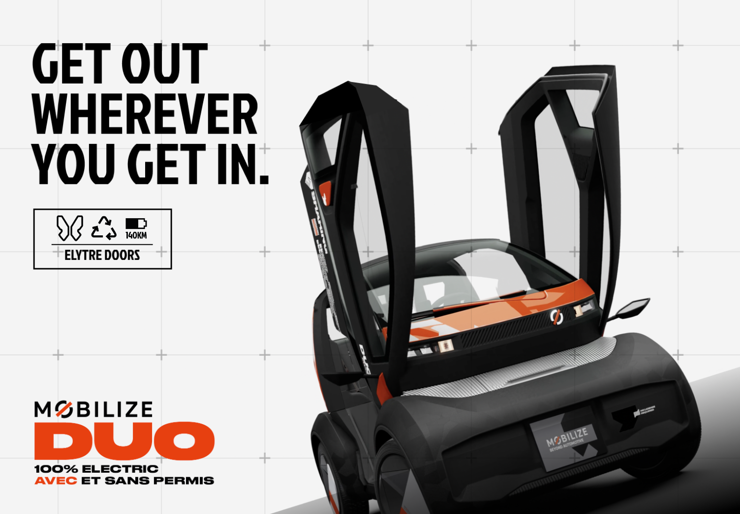 Mobilize is a subsidiary of Renault Group specialized in sustainable mobility. Their electric quadricycle Duo, and its utilitarian counterpart Bento, are set to be released in early 2025. With this campaign, we needed to both set Duo and Bento apart from other popular vehicles like Citroën Ami and show its benefits compared to regular cars.